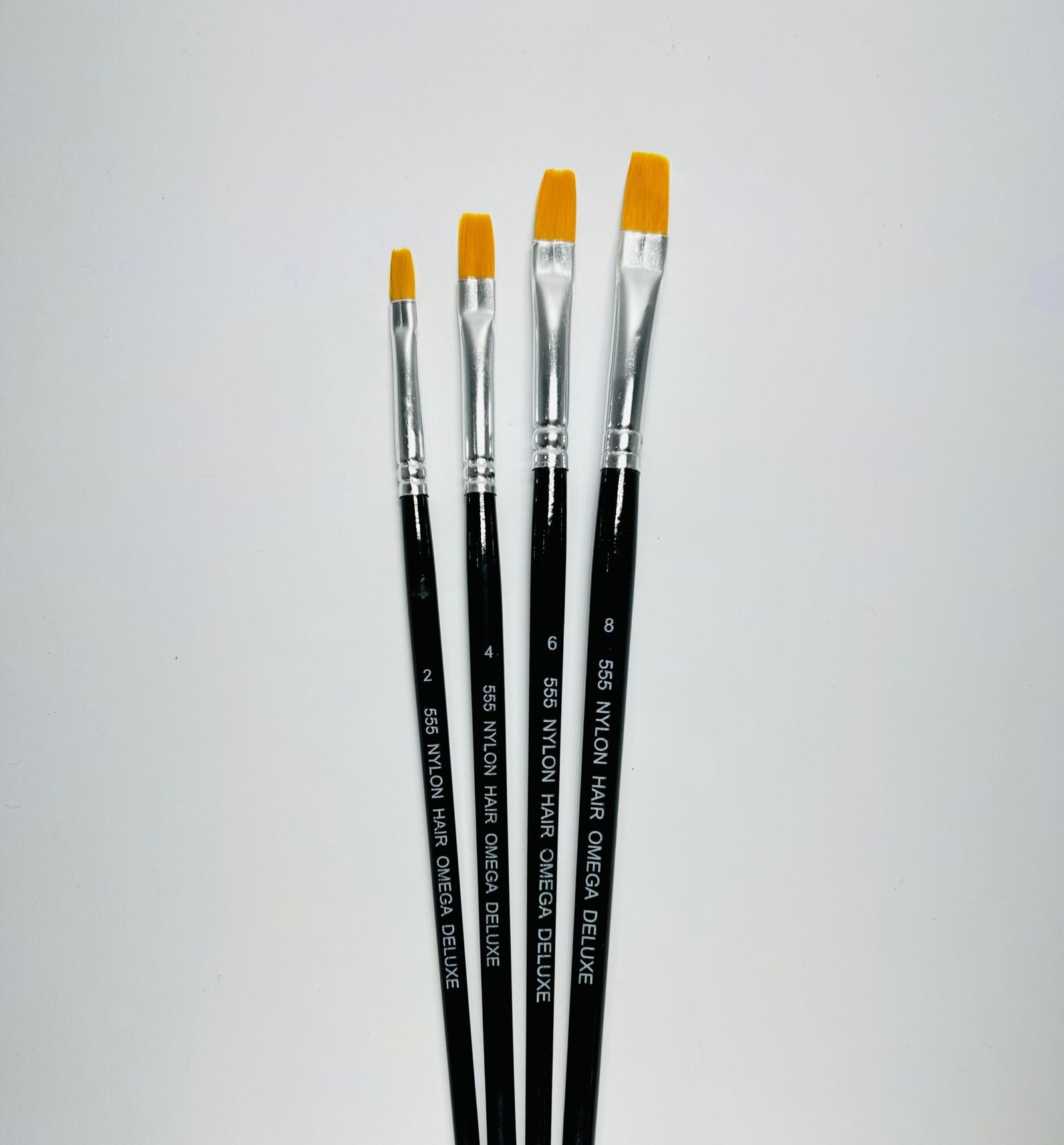 These Omega flat Brushes are a versatile set of painting brushes suitable for various artistic techniques. These brushes are available in flat synthetic bristles (Nylon 555), offering smooth and consistent application of paint.